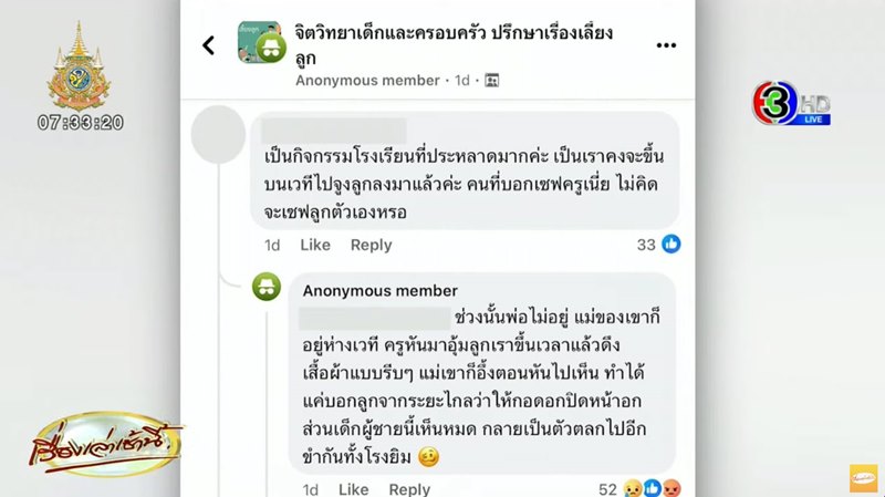 กรณีผู้ปกครองนักเรียนระดับชั้นอนุบาล ที่ศูนย์เด็กเล็กแห่งหนึ่ง โพสต์ข้อความถึง การแข่งขันกีฬาสี ในกลุ่ม "จิตวิทยาเด็กและครอบครัว ปรึกษาเรื่องเลี้ยงลูก" แสดงความไม่พอใจการแข่งขันที่เอาลูกสาวอายุ 4 ขวบ ขึ้นเวที โดยในกิจกรรม เด็กผู้ชายแก้ผ้าล่อนจ้อน และเด็กผู้หญิงเหลือแค่กางเกงใน แล้วแข่งขันกันใส่เสื้อผ้า ต่อหน้าครู นักการ ผู้ปกครอง และผู้ที่มาร่วมในงาน แต่เมื่อแจ้งไปในไลน์กลุ่มกลับมีบางส่วนแสดงท่าทีด่าทอ ตำหนิฝั่งผู้ปกครอง และ Save ครูนั้น