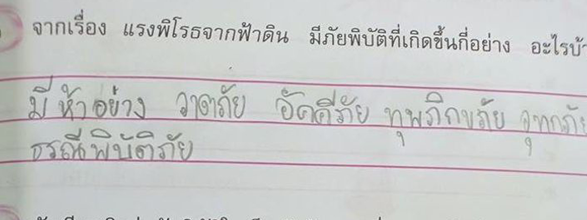 ส่องการบ้านนักเรียน ทำส่งครูในหัวข้อภัยพิบัติ ถึงกับตรวจคำตอบต่อไม่ได้เลย