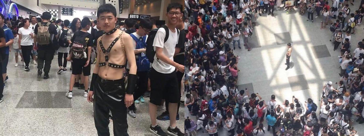 เฟซบุ๊ก Kim Lee ได้โพสต์ในกลุ่ม 好fashion呀你 ซึ่งเป็นภาพในเทศกาลอนิเมะแห่งหนึ่ง มีคนเข้างานเป็นจำนวนมาก แต่มีบางอย่างสะดุดผู้คนในงาน พากันมุงดูให้พรึ่บ เห็นหนุ่มคนหนึ่งแต่งคอสเพลย์มาแบบเซ็กซี่ขยี้ใจ หวังให้คนทั้งงานสนใจ ผลลัพธ์ที่ได้นั้น เจ้าหน้าที่ รปภ. ถึงกับนำตัวหนุ่มคนนี้ออกจากงานทันที ช่างเป็นชะตากรรมที่น่าสงสารจริง ๆ