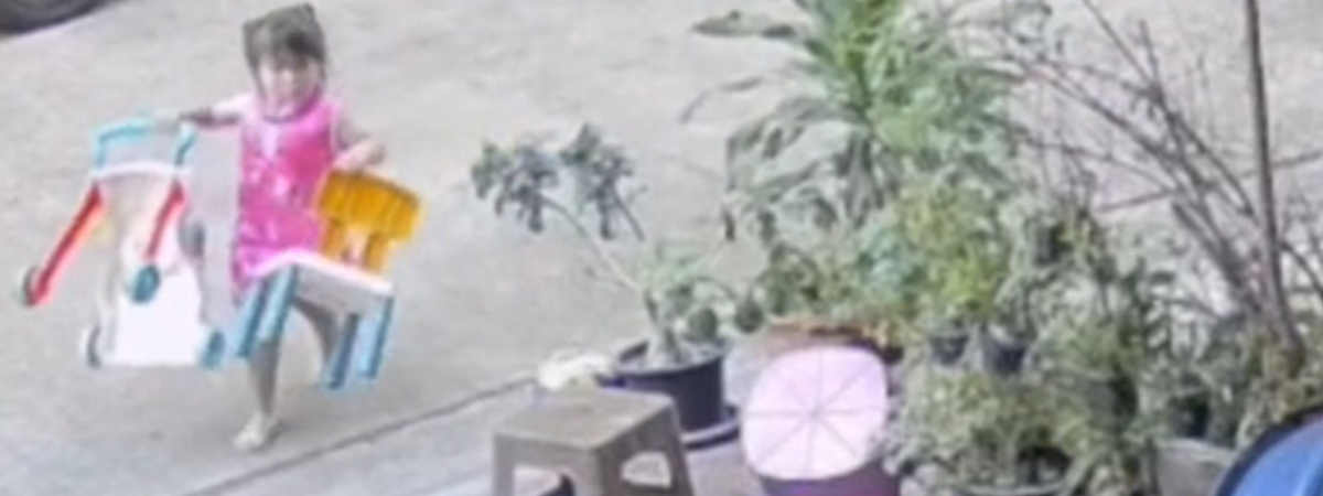 ผู้ใช้ TikTok @pim.chsv ได้เผยภาพหนูน้อยคนหนึ่ง พยายามจะขนของหลายอย่างเข้าบ้าน แต่นึกได้ว่าตัวเองมีแค่สองแขน เลยผุดไอเดียดี ๆ ขึ้นมา เพียงแค่เอาเก้าอี้มาใส่ไว้ที่หัว แล้วขนของเข้าบ้านได้อย่างสบาย ชาวเน็ตพากันขำและเอ็นดูน้องกันทั้งโซเชียล