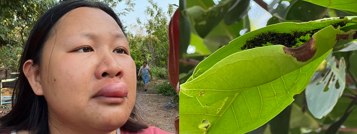 สาวสงสัยว่ามันคือตัวอะไร หลังเก็บชมพู่กินในสวน แต่โดนแมลงปริศนาต่อยจนปากบวม