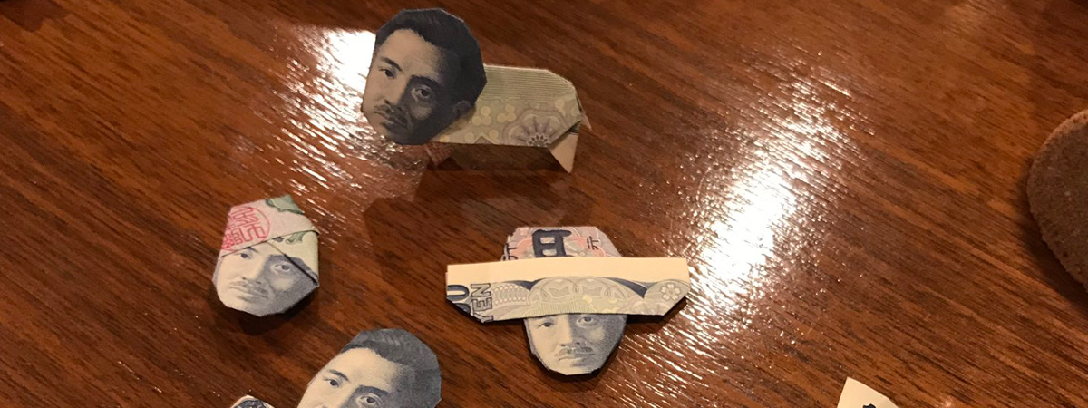 ทวิตเตอร์ @InfoMayuri ได้เผยภาพคนญี่ปุ่นท่านหนึ่ง ไปร้านเหล้าแห่งหนึ่งในเวลากลางคืน แล้วบังเอิญเห็นคุณลุงที่ร่วมโต๊ะเดียวกัน พับแบงก์ของเล่น ใส่ความคิดสร้างสรรค์ไปแบบจัดเต็ม ทำถึงจนเป็นไวรัลดังในโซเชียล