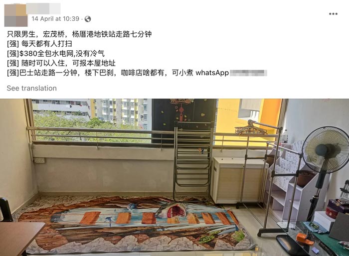 ภาพจาก เฟซบุ๊ก Singapore Islandwide Room Rental (No Agent Fee)