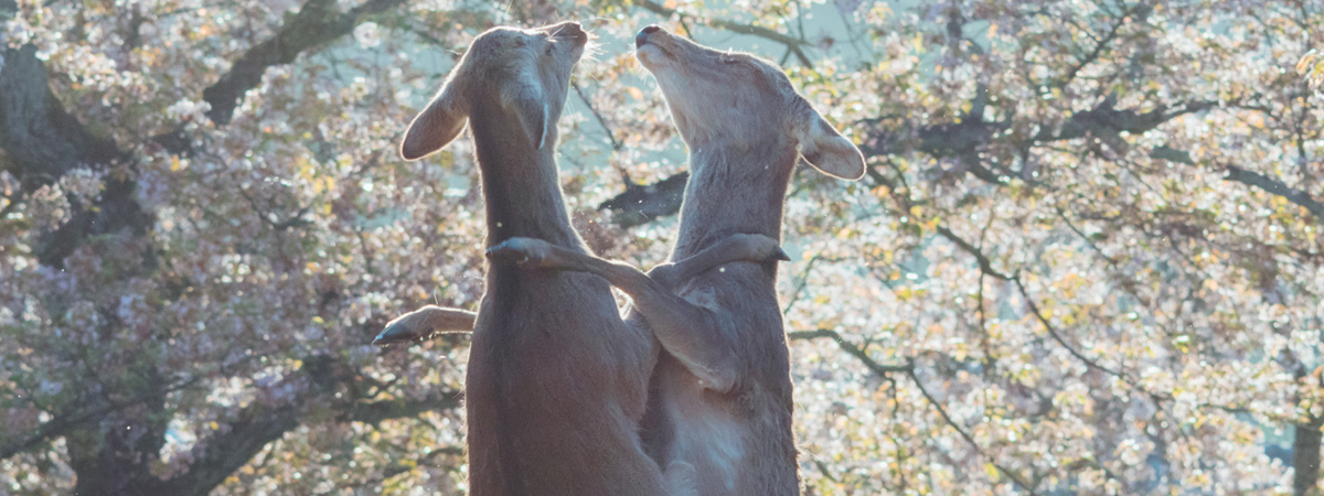 ทวิตเตอร์ @igufoto ได้เผยภาพเจ้ากวาง 2 ตัวที่ญี่ปุ่น กำลังต่อสู้กันอย่างดุเดือด แบบชนิดที่ว่าไม่มีมิตรแท้เลยทีเดียว แต่ด้วยความที่มีดอกซากุระเป็นพื้นหลัง ทำให้เปลี่ยนโทนจากคู่อริกลายเป็นเพื่อนรักทันที เหมือนไม่ได้ต่อยกัน เหมือนกำลังกอดมากกว่า ฮากระจายจนเป็นไวรัลดัง