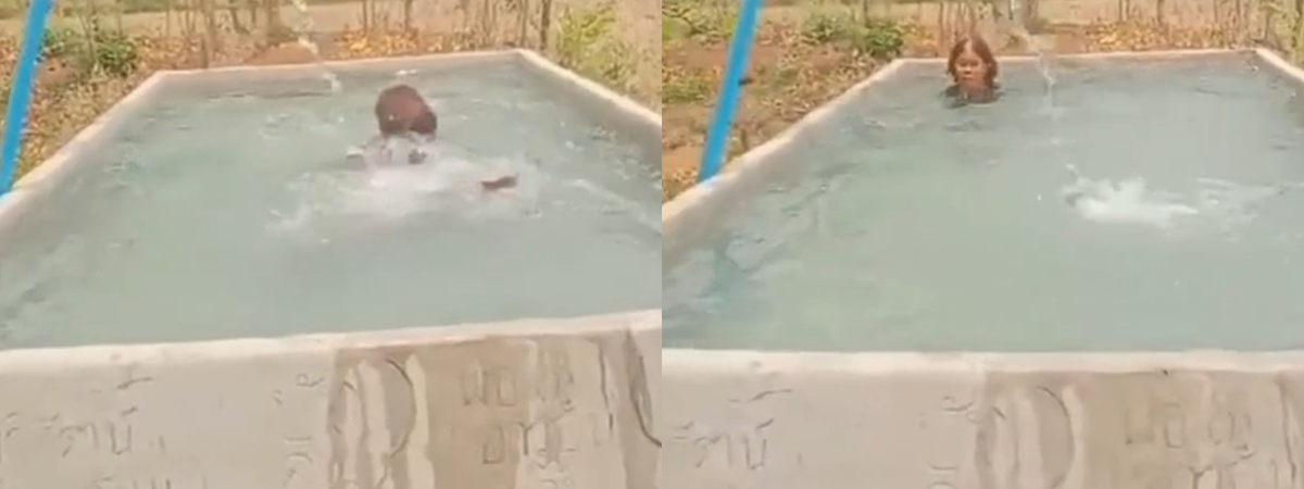 ไหงถึงเป็นแบบนี้ ทำสระน้ำด้วยปูน คลายร้อนได้ 2 นาที พังไม่เป็นท่า