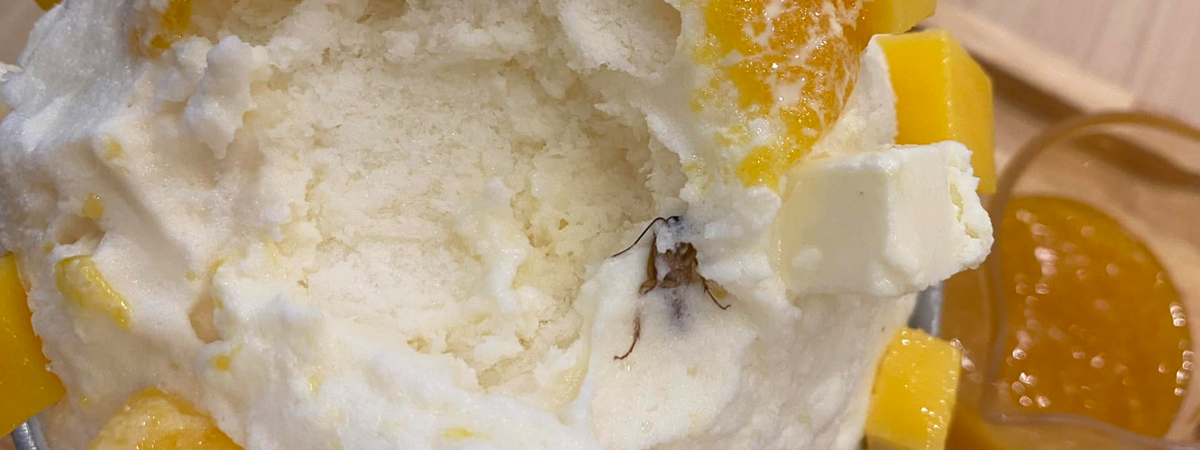 เฟซบุ๊ก Soratus Lertampornvit ได้โพสต์ในกลุ่ม พวกเราคือผู้บริโภค เผยประสบการณ์ในการกินบิงซูร้านแห่งหนึ่ง ตักกินไปได้สักพัก เห็นบางอย่างแปลก ๆ อยู่ในบิงซู ก่อนรู้อีกทีว่าเป็นแมลงสาบ แถมขนาดตัวเท่าข้อบนนิ้วก้อย ถึงกับกินต่อไม่ลงเลยทีเดียว ทางร้านจะทำถ้วยใหม่ให้ แต่ทางลูกค้าท่านนี้ขอเงินคืนอย่างเดียว และจะไม่กลับมากินร้านดังกล่าวอีกต่อไป