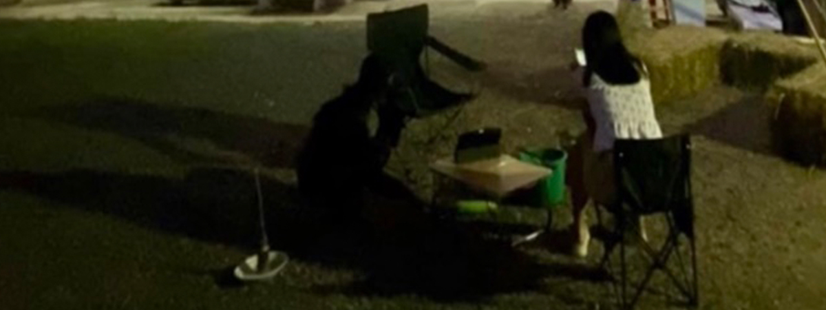 สงสัยว่าเป็นเงาอะไร ภาพถ่ายสาวนั่งปิกนิกหน้าบ้าน เห็นเงาดำปริศนานั่งข้าง ๆ ยิ่งซูมยิ่งขนลุก