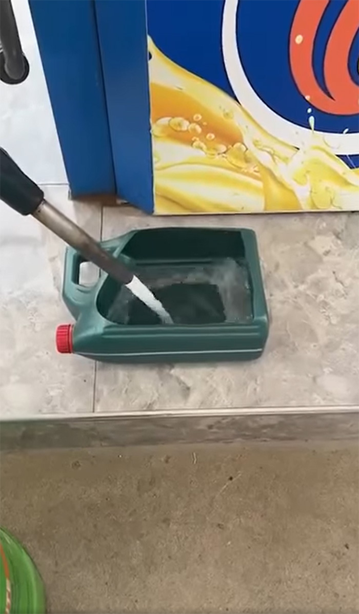 ขณะเดียวกันทางเพจ อีซ้อขยี้ข่าว ได้เผยคลิปที่บันทึกภาพขณะเกิดเหตุไว้ พบว่าสิ่งที่ออกมาจากหัวจ่ายของปั๊มน้ำมันนั้นกลายเป็นน้ำเปล่า แทนที่จะเป็นน้ำมัน ซึ่งทางปั๊มอ้างว่าล้างแท็งก์ เลยมีน้ำเปล่าปนเปื้อนออกมา และชี้ว่าจากเหตุการณ์นี้ ทางปั๊มแจ้งว่าหากอยากให้ชดใช้ก็ไปฟ้องเอา เป็นคดีแพ่ง ไม่ใช่อาญา