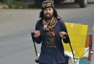 ตื่นขึ้นมาปรากฏว่ากระเป๋าสตางค์ถูกฉีก ทั้งเงินทั้งบัตรประชาชน รวมทั้งตั๋วรถไฟหายไปหมด ตนตกใจมาก เดินไปหาตำรวจแถวนั้นเพื่อขอความช่วยเหลือ แต่ตำรวจบอกว่า มีปัญญามาก็มีปัญญากลับบ้านได้ ตนเห็นตำรวจพูดแบบนั้นจึงเดินออกมา ตัดสินใจเดินกลับบ้าน เดินเรื่อย ๆ เหนื่อยก็พัก