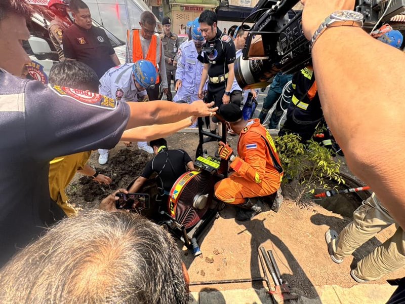 เจ้าหน้าที่อาสากู้ภัยมูลนิธิป่อเต็กตึ๊ง เล่าว่า ได้รับแจ้งเหตุชายตกลงไปในท่อ จึงรีบรุดมายังที่เกิดเหตุ พบว่า จุดเกิดเหตุมีลักษณะเป็นท่อที่มีเพียงฝาไม้อัดทรงกลมปิดไว้ และมีดินปลูกต้นไม้เกาะกลางถนนไหลลงมากลบปิดไว้ ทำให้คนที่ตกอาจมองไม่เห็นท่อ เมื่อเหยียบไม้อัดดังกล่าวก็หัก และตกลงไปด้านล่าง