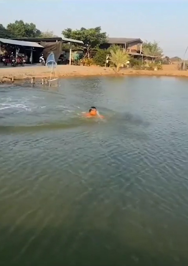 โดยที่ในคลิป จะเห็นว่ามีชาย 2 คนว่ายน้ำแข่งกันไปที่อีกฝั่งของสระ คนหนึ่งว่ายน้ำลอยตัวปกติ อีกคนได้จมหายไปเลย และมาโผล่อีกทีที่ท้ายสระ โดยไม่ขึ้นมาหายใจ ทิ้งห่างคู่แข่งแบบไม่เห็นฝุ่น ซึ่งทันทีที่เขาโผล่ขึ้นมาเขาก็บอกว่า "กลับไปต่อยมวยดีกว่าครับผม ไม่ต่างอะไรกับมิสเตอร์ไฟต์เลย โอ้โห"
