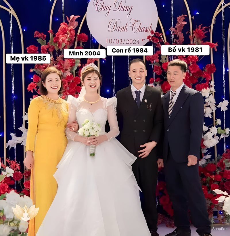 ภาพแต่งงานของคู่บ่าวสาว ที่โชว์ปีเกิดของทั้ง 4 คนในภาพ กลายมาเป็นไวรัลที่มีคนเข้ามาคอมเมนต์เป็นพัน โดยพบว่า เหงียน ดานห์ ทันห์ ผู้เป็นเจ้าบ่าว เกิดปี 1984 ปัจจุบันอายุ 40 ปี ขณะที่ ถี่ ดุง เจ้าสาวนั้นเกิดปี 2004 ปัจจุบันอายุ 20 ปี และที่น่าสนใจคือแม่เจ้าสาวเกิดปี 1985 ส่วนพ่อเจ้าสาวเกิดปี 1981 เรียกว่าห่างกับลูกเขยแค่ไม่กี่ปี