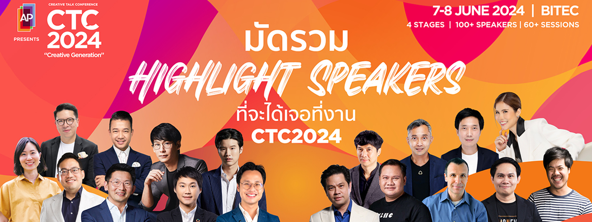 พลาดไม่ได้เลยสำหรับงาน Conference แห่งปี ที่เจ้าของธุรกิจ เอเจนซี่ และคนทำงาน กับงาน AP Thailand presents CREATIVE TALK CONFERENCE 2024 “Creative Generation” งานมหกรรมความรู้ที่จะติดอาวุธธุรกิจด้วยความคิดสร้างสรรค์ในยุคที่ Creativity จะเป็นอีกหนึ่งหัวใจสำคัญของคนทุกวัย เพราะ ‘โอกาส’ เป็นเรื่องของการเข้าใจเทรนด์ ไม่ว่าจะเป็นเรื่องสิ่งแวดล้อม หรือการวางแผนระยะสั้นที่ทุกธุรกิจใส่ใจกันมากขึ้น เมื่อเศรษฐกิจโลกไม่เหมือนเดิมอีกต่อไป เพียงงานเดียวที่เราจะได้เจอ Speakers ชั้นนำกว่า 100 คน ที่มาช่วยแชร์ประสบการณ์ พัฒนาทักษะ ยกระดับความรู้กันอย่างใกล้ชิด พร้อมสนุกไปกับเซสชั่นอีกกว่า 60 เซสชั่น ในวันที่ 7-8 มิถุนายน 2567 ณ ไบเทค บางนา พิเศษสุด ๆ หากกรอกโค้ด KAPOOK รับส่วนลด 10% สำหรับซื้อบัตรปกติไปเลย !