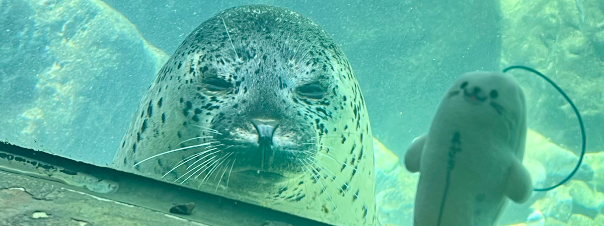 ทวิตเตอร์ @GacchiRika ได้เผยภาพเหตุการณ์ที่พิพิธภัณฑ์สัตว์น้ำฮาโกะเนะเอ็น จังหวัดคานางาวะ ประเทศญี่ปุ่น มีนักท่องเที่ยวถือตุ๊กตาแมวน้ำไปวางไว้ตรงหน้าที่จัดโชว์แมวน้ำ แล้วแมวน้ำตัวหนึ่งว่ายโผล่มา เห็นตุ๊กตาวางอยู่ตรงหน้า มองด้วยวความสงสัยว่า นั่นใช่ตัวเองรึเปล่า ทั้งฮาและน่ารัก จนเป็นไวรัลดังในโซเชียล
