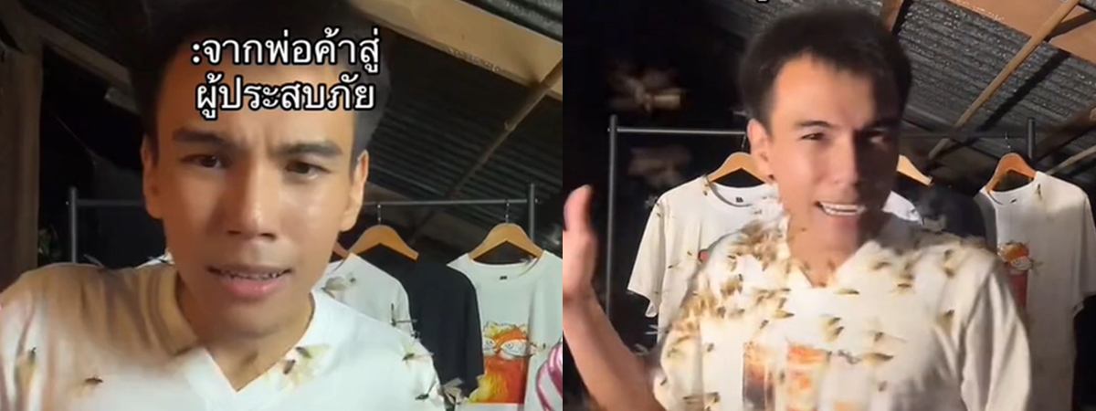 จากพ่อค้าสู่ผู้ประสบภัย กำลังขายเสื้อ เจอแมลงเม่าบินว่อน ก่อนพลิกวิกฤตเป็นโอกาส
