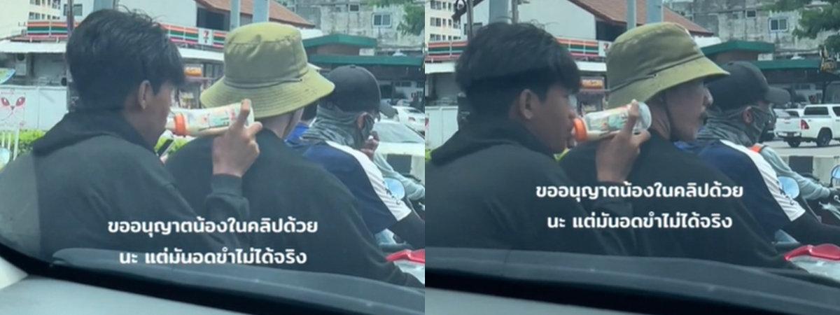 ผู้ใช้ TikTok @noey.penpak ได้เผยภาพตอนเห็นวัยรุ่นซ้อนมอเตอร์ไซค์ ระหว่างติดไฟแดงถนนแห่งหนึ่ง ดันสังเกตเห็นใช้ขวดนมเด็กดื่มนม มาพร้อมกับจุกนม ดูท่าแล้วกำลังอร่อยเลยทีเดียว ชาวเน็ตพากันขำและเอ็นดูทั้งโซเชียล