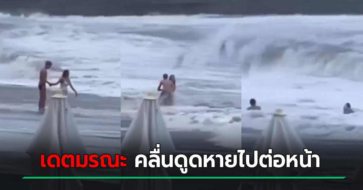 นาทีช็อก คู่รักเดตโรแมนติกริมชายหาด กลายเป็นโศกนาฏกรรม แฟนสาวถูกคลื่นดูดลงทะเลต่อหน้า เจ้าหน้าที่ไม่พบร่าง