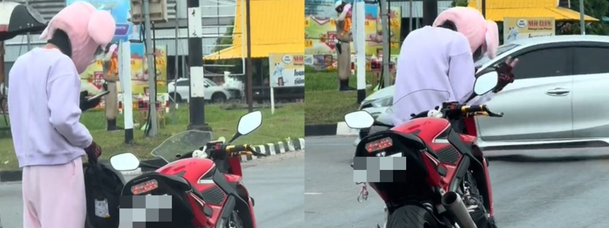 ผู้ใช้ TikTok @rainnbow__ ได้เผยภาพตอนที่รอรถติดไฟแดง มีหนุ่มขี่มอเตอร์ไซค์คนหนึ่ง ท่าทางคงเบื่อที่จะรอนาน เลยหาอะไรทำสักหน่อย เอาลำโพงมาเปิดเพลงเต้นกลางถนน แถมชุดยังจัดเต็มไม่แพ้กัน สร้างสีสันจนผู้คนพากันขำสนั่น นอกจากนี้ยังเป็นไวรัลดังบนโซเชียลอีกด้วย