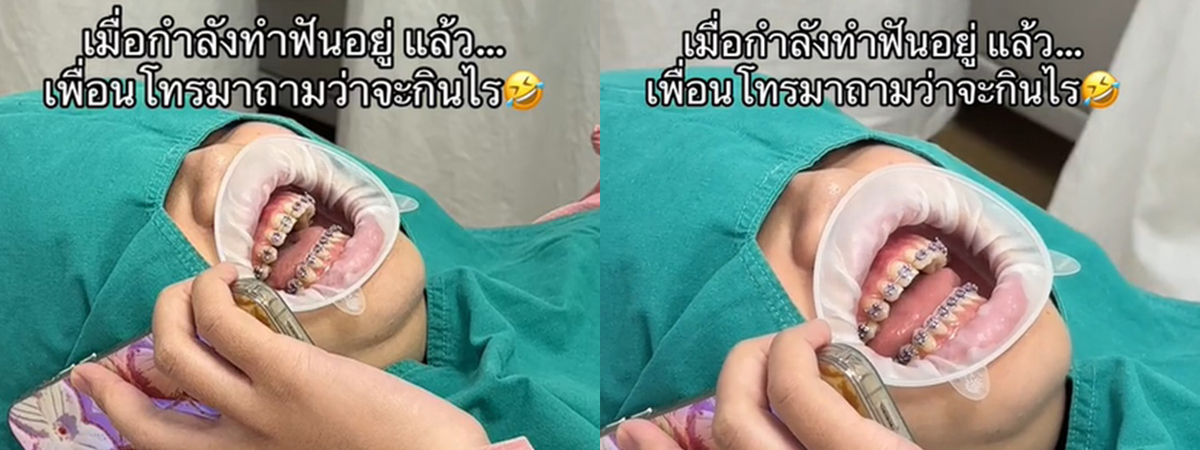 กลั้นขำไม่อยู่ สาวกำลังทำฟัน แล้วเพื่อนโทร. มา ถามจะกินอะไร ทำหมอหิวด้วยเลย