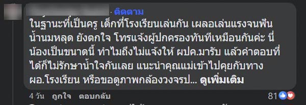 แม่ : ทำไมคุณครูไม่แจ้งผู้ปกครอง จะได้พาน้องไปหาหมอ