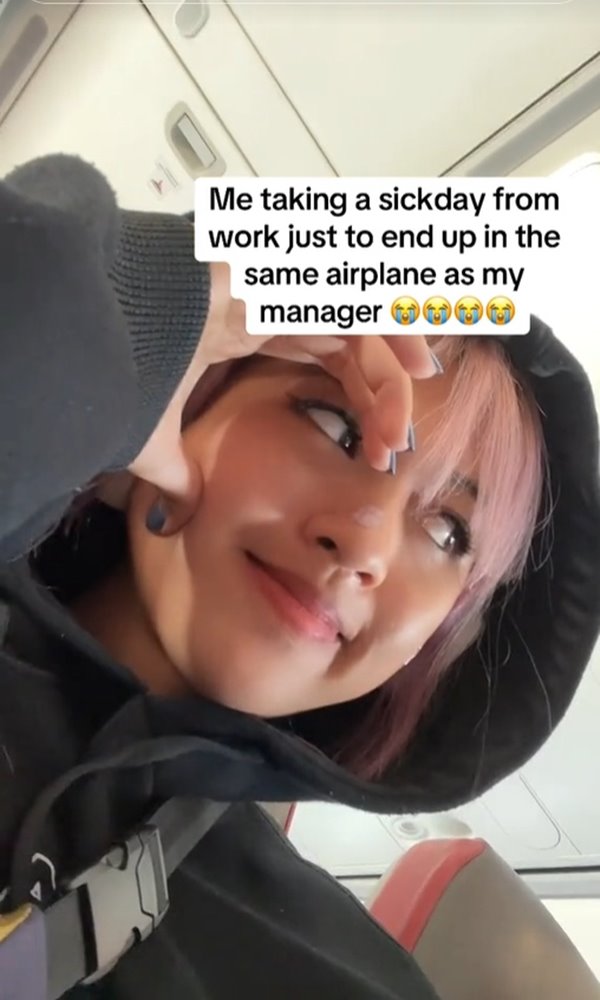 สาวบอกเจ้านายขอลาป่วย ใครจะรู้ดันจ๊ะเอ๋กันบนเครื่องบิน โป๊ะแตกเบอร์นี้ ทำชาวเน็ตขำจนเป็นไวรัล ไม่คิดว่ามาเจอกันที่นี่ได้