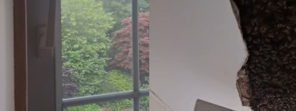 อินสตาแกรม @lochnesshoney ได้เผยภาพเหตุการณ์ที่บ้านหลังหนึ่ง ในประเทศสกอตแลนด์ หลานมาเยี่ยมบ้านแล้วนอนพักอยู่ในห้องนอนแขก ตอนกลางคืนมักจะได้ยินเสียงแปลก ๆ ตลอด พอไปเล่าให้คนในบ้านฟัง ก็คิดว่าแค่จินตนาการเด็ก ก่อนที่รู้ที่มาของเสียงแปลก ๆ ที่เด็กเล่าให้ฟัง พบว่ามีฝูงผึ้งกว่า 180,000 ตัว ทำรังอยู่บนเพดานห้อง เลยจ้างบริษัทที่เชี่ยวชาญด้านผึ้ง กำจัดและย้ายพวกมันไว้ในรังชั่วคราว