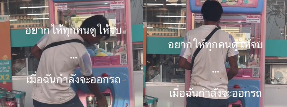 ยิ้มไม่หุบ หนุ่มกำลังหยอดเหรียญคีบตุ๊กตา ก่อนพบกับบทสรุปอันแสนอบอุ่นหัวใจ