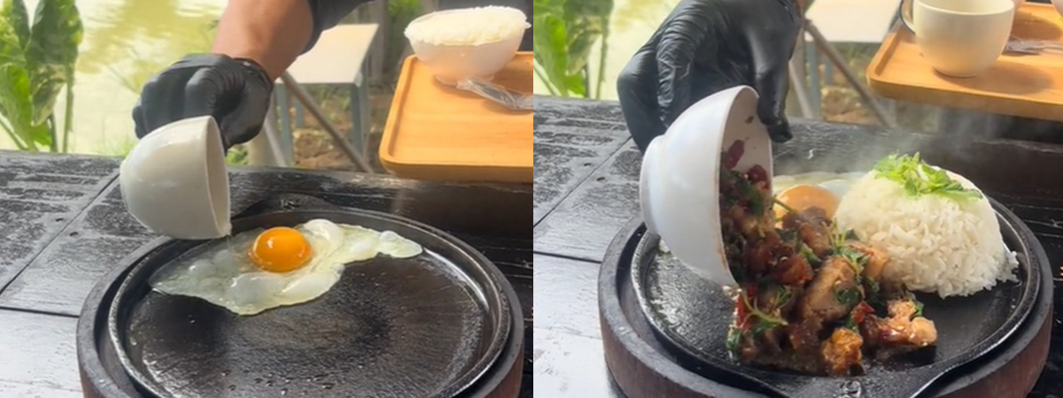 ผู้ใช้ TikTok @shopping_mini ได้เผยภาพคาเฟ่แห่งหนึ่งที่เชียงใหม่ เชฟเสิร์ฟเมนูกะเพราหมูกรอบแบบกระทะร้อน ยิ่งไปกว่านั้น เทไข่ดาวแบบสด ๆ พร้อมข้าวในกระทะ ถือเป็นมิติใหม่ในการกินเมนูกะเพราเลยก็ว่าได้ สาวกผัดกะเพราถูกใจสิ่งนี้กันให้พรึ่บ