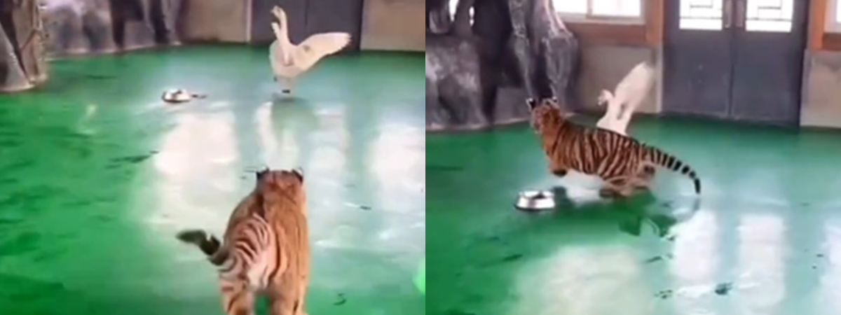 อินสตาแกรม @tiger.asteroid ได้เผยภาพนาทีห่านวิ่งหนีลูกเสือแบบไม่คิดชีวิต หลังอีกฝ่ายตะปบไล่ในชนิดที่ว่ากะไม่ให้มีชีวิตรอด แต่ดูเหมือนว่าเจ้าห่านจะทนไม่ไหว เลยขอสู้กลับจนลูกเสือตัวนี้สิ้นลาย จนเข้าไปอยู่ในกรง กลายเป็นไวรัลที่เรียกเสียงฮาสนั่น