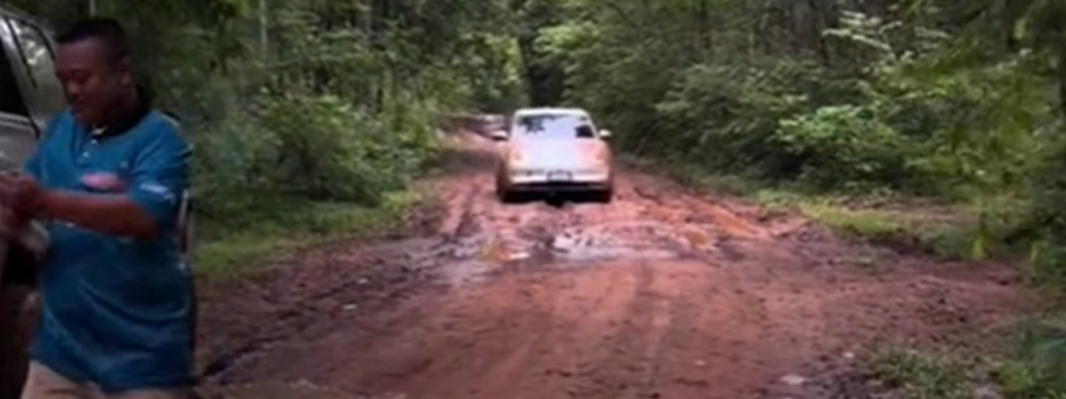 GPS เป็นเหตุสังเกตได้ เห็นรถไฟฟ้าขับโผล่กลางป่า โคลนเลอะทั้งคัน