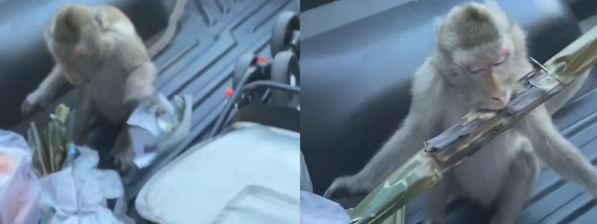 ผู้ใช้ TikTok @gingerzkh ได้เผยภาพเจ้าลิงจากเขาสามมุข จ.ชลบุรี ปีนท้ายกระบะพร้อมขโมยของกินที่มนุษย์ซื้อมา หยิบเจออะไรก็คือกินหมด ไม่สนลูกใคร มนุษย์พยายามไล่ลงรถแล้ว ก็ยังนั่งกินแบบหน้าตาเฉย ชาวเน็ตพากันขำและสงสารในเวลาเดียวกัน