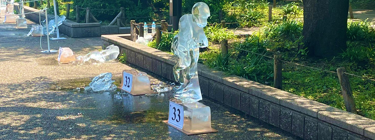 ทวิตเตอร์ @yushimaosusume ได้เผยภาพงานแข่งขันแกะสลักที่สวนอุเอโนะ ประเทศญี่ปุ่น โดยให้ผู้เข้าแข่งขันสามารถสร้างสรรค์ผลงานได้ตามที่ต้องการ เนื่องด้วยแข่งในช่วงหน้าร้อน ทำให้น้ำแข็งละลายเร็ว ใครที่มาดูงานประติมากรรมช้ากว่านี้คงไม่เหลืออะไรให้เห็นอีกแล้ว