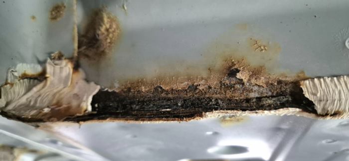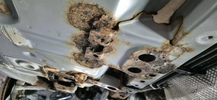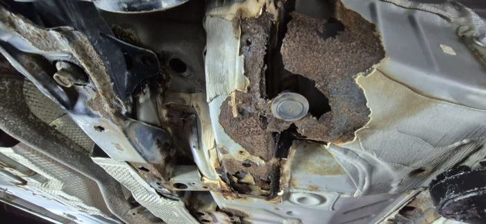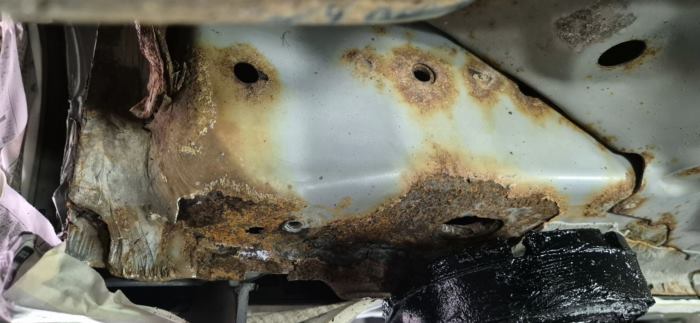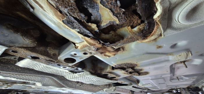 จากภาพจะเห็นว่า แม้ตัวรถจะดูใหม่ แต่เมื่อยกรถสำรวจใต้ท้องรถกลับพบว่ามันเต็มไปด้วยสนิมกัดกร่อนไปแล้วหลายส่วน บางชิ้นส่วนผุกร่อนจนแทบจะหลุดออก ราวกับเป็นรถเก่าที่ใช้งานมานานและไม่ได้ดูแลรักษาเลย โดยร้านระบุว่า "รู้อะไรไม่สู้ รู้งี้ เคสนี้ไม่ไล่ซ่อมปะผุหลายหมื่น ก็ต้องขายทิ้ง" โดยคอมเมนต์ด้วยว่า "ลูกค้าเห็นรถตัวเองถึงกับพูดไม่ออก"