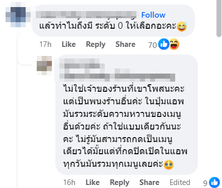 ล่าสุด เฟซบุ๊ก Wasin Lardsuwan ได้ออกมาเผยออร์เดอร์ของลูกค้าคนหนึ่ง ซึ่งสั่งขนมปังแผ่นนมเนย-นมข้น และเขียนกำกับว่าไม่ต้องใส่นมเยอะ ขอหวานน้อย และน้ำแดงโซดาเย็นแยกน้ำแข็ง ที่ระบุความหวาน 0% จนแม่ค้าก็ยังงงว่า แบบนี้ต้องทำยังไง เพราะน้ำแดงที่ใส่ในโซดายังไงก็หวานอยู่แล้ว จะไม่ให้หวานเลยไม่ได้ เพราะนี่ไม่ใช่กาแฟ