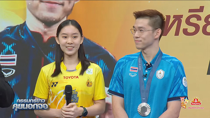 อย่างไรก็ตาม สิ่งที่หลายคนโฟกัสนอกจากเจ้าของเหรียญเงินโอลิมปิก 2024 แล้ว ก็คือน้องสาวอย่าง ส้ม สรัลรักษ์ วัย 18 ปี นักแบดมินตันหญิงมือ 3 ของโลกประเภทเยาวชนหญิง ที่มาร่วมรอรับพี่ชายด้วย