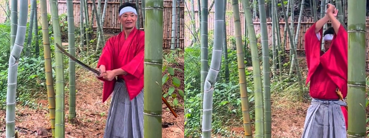 ผู้ใช้ TikTok @samurai_goken ได้เผยภาพหนุ่มชาวญี่ปุ่นท่านหนึ่ง พาพิสูจน์วิถีของการเป็นซามูไร โดยการใช้ดาบคาตานะฟันไม้ไผ่ เห็นในหนังอย่างเท่ พอมาพิสูจน์กับของจริง ดูเหมือนว่าดาบคาตานะจะทนความแข็งแกร่งของไม้ไผ่ไม่ได้ ฟันทีเดียวดาบงอไปเลย ชาวเน็ตพากันแซว นี่มันดาบคาตานะเซินเจิ้นชัด ๆ