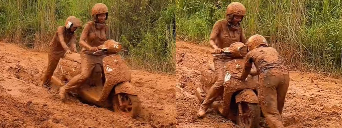 ผู้ใช้ TikTok @pear_tawinun ได้เผยภาพสาวท่านหนึ่ง พาเพื่อนไปผจญภัยสุดแสนหฤโหด กับกิจกรรมขี่มอเตอร์ไซค์วิบากที่เขากระโจม สิ่งที่คิดคืออยากพาเพื่อนไปขี่รถเล่นแบบชิล ๆ แต่สิ่งที่ทั้งคู่ต้องเจอ จากนักท่องเที่ยวกลายเป็นผู้ประสบภัย เลอะโคลนทั้งรถและคนเลยทีเดียว