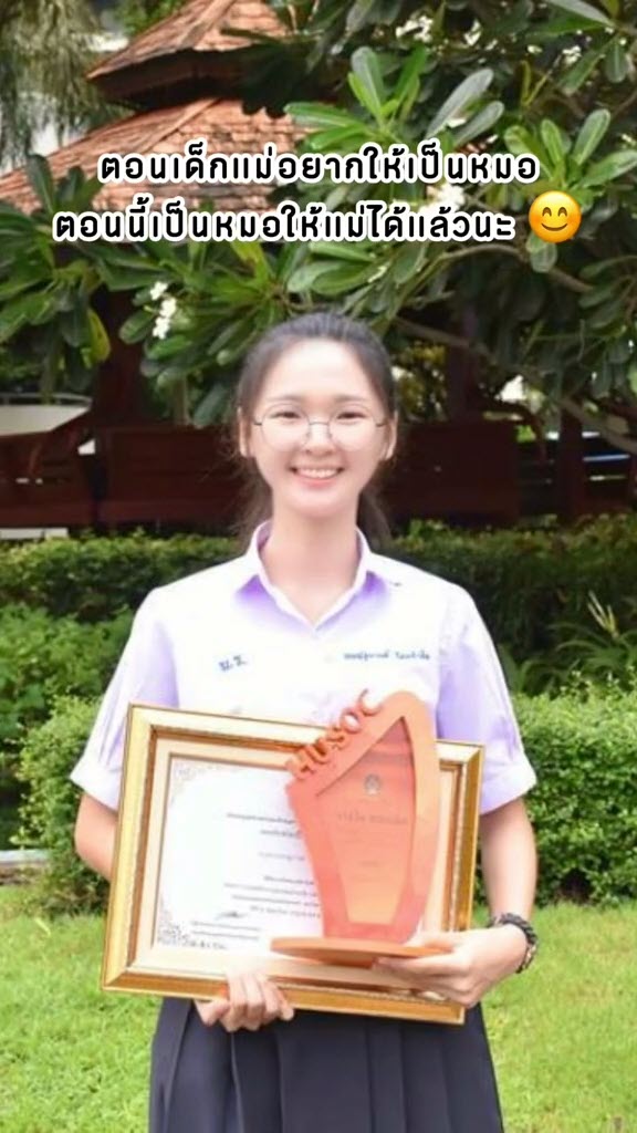 สาวรีวิวชีวิต ย้อนภาพสมัย ม.ปลาย ลุคเด็กเรียน ถือรางวัลเพียบ แม่อยากให้เป็นหมอ โตมาเป็นหมอให้แม่ได้จริง ๆ คาดไม่ถึงจนเป็นไวรัล 3 ล้านวิว