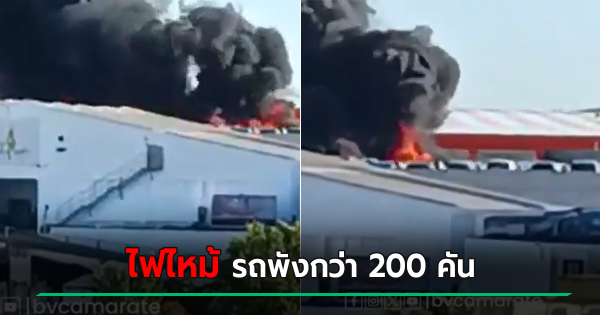 ไฟไหม้ลานจอดรถใกล้สนามบิน เสียหายกว่า 200 คัน คาดต้นเพลิงเกิดจากรถยนต์ไฟฟ้า ดับเพลิงระดมกำลังควบคุมเพลิง ชี้เป็นรถของผู้โดยสาร ที่จะขึ้นเครื่องบิน