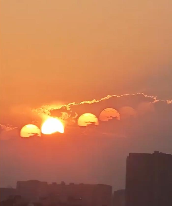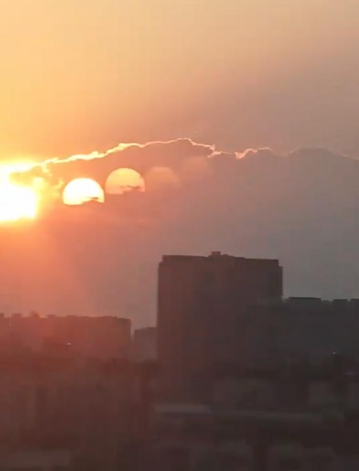 ชาวเมืองถ่ายติดภาพพระอาทิตย์ 7 ดวงพร้อมกัน กลายเป็นไวรัล คนแซวต้นเหตุโลกร้อน ด้านผู้เชี่ยวชาญอธิบาย