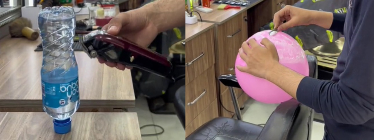 ผู้ใช้ TikTok @barbaros_.barbershop ได้เผยภาพร้านตัดผมแห่งหนึ่ง กำลังฝึกคนที่จะมาเป็นช่างตัดผม หลายคนคงคิดว่าได้ฝึกตัดผมกับคนจริงเลยรึเปล่า สำหรับการฝึกของที่นี่ ให้ฝึกตัดแบบจำลอง ฝึกกับสิ่งของใกล้ตัว เพื่อจะได้รู้วิธีการตัดที่ถูกต้อง แปลกตาจนเป็นไวรัลดังในโซเชียล