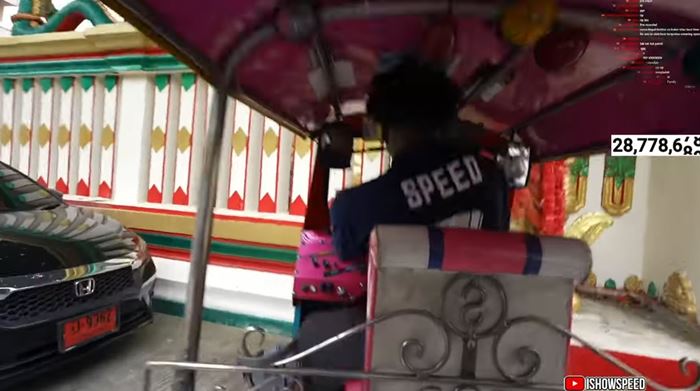 จังหวะที่ถูกพูดถึงมากที่สุด เกิดขึ้นตั้งแต่ช่วงต้นของไลฟ์ ที่สปีด เดินทางมาทำกิจกรรมรอบ ๆ วัดแห่งหนึ่ง ก่อนจะขอลองขี่รถตุ๊ก ๆ แต่คนขับสอนแค่แป๊บเดียวเจ้าตัวก็ร้อนวิชา รีบบิดรถพุ่งไปอย่างรวดเร็ว แถมยังเบรกไม่เป็น งานนี้จึงพุ่งชนเข้ากับกำแพงวัดเต็ม ๆ โดยยูทูบเบอร์ดังถึงกับหน้าถอดสี และได้รับบาดเจ็บที่หัวเล็กน้อย