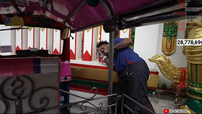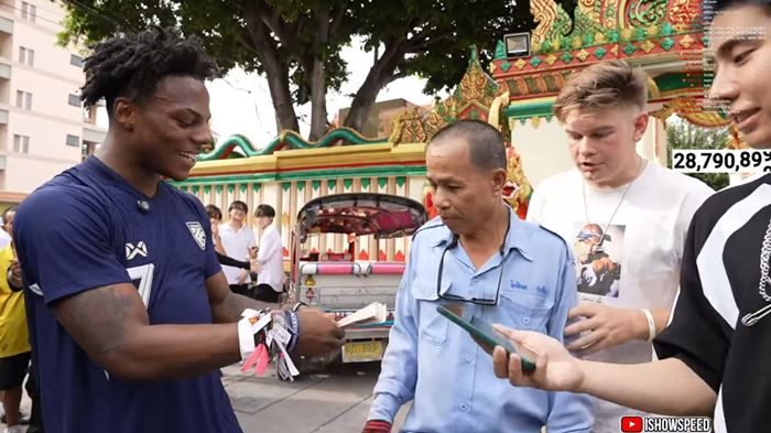 IShowSpeed มาเยือนไทย ไลฟ์ขี่ตุ๊ก ๆ พลาดชนกำแพงวัด ได้เสื้อตัวแรร์ ก่อนลองชิมขนมในตำนาน ซอง 5 บาท จ่ายแบงก์พัน ไม่ต้องทอน