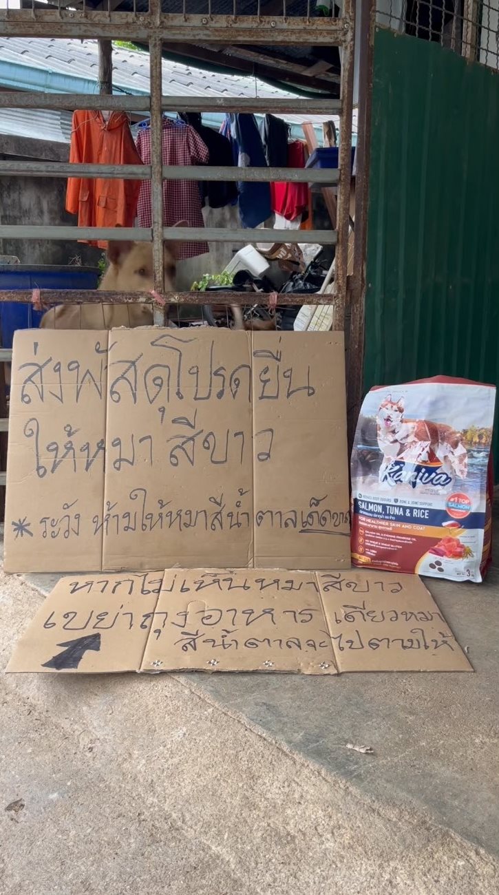เจ้าของบ้านติดป้าย ยื่นพัสดุให้หมาสีขาวเท่านั้น ถ้าไม่เจอให้เขย่าถุงอาหาร สีน้ำตาลจะไปตามให้ พิสูจน์แล้วทำได้จริง เป็นไวรัล 5.7 ล้าน ตอนนี้รู้แล้ว เจ้าของบ้านทำแบบนี้เพื่ออะไร