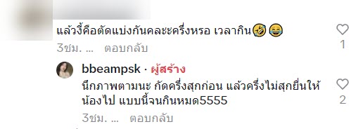 ต่อมา เจ้าของคลิปเล่าเพิ่มเติมว่า หลังจากสั่งไปก็เอะใจว่าทำไมแม่ค้าทำนานกว่าปกติ ยืนรอกว่า 20 นาที นึกว่ามีคิวก่อนหน้า ที่ไหนได้คงเสียเวลากับการจุ่มลวกกุ้งให้สุกครึ่งตัวแบบนี้ ที่พีคกว่าคือตอนแบ่งกันกินกับน้อง ก็จำใจต้องแบ่งกันคนละครึ่ง เธอกินด้านที่สุก ส่วนน้องกินด้านที่ไม่สุก เท่ากับจานนี้ไม่ได้ฟีลกินกุ้งแบบเต็ม ๆ ตัวซะอย่างงั้น