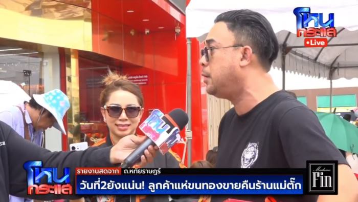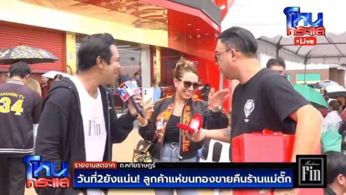 ช่วงหนึ่ง ผู้สื่อข่าวทีมโหนกระแส สอบถามคู่รักที่หอบทองพร้อมของแถมที่ซื้อจากไลฟ์มาขายคืน โดยภรรยา เปิดใจว่า ซื้อมา 29,911 บาท ตอนนั้นชอบแม่ค้าคนนี้ เข้ามาดูก็ไม่ได้ฟังว่าทองน้ำหนักเท่าไหร่ ก็เอฟจองซื้อเลย เพราะเข้าใจว่าตอนนั้นราคาทองในตลาดประมาณ 30,000 บาท เมื่อเห็นมีการขายราคาแบบนี้จึงรีบซื้อเลย แต่ก็เก็บไว้ ไม่ได้คิดเอาไปขาย เพราะเชื่อว่าอาจจะราคาขึ้น แต่พอดู โหนกระแส จึงเพิ่งรู้ว่าหากเอาไปขายคงได้แค่ 6,000 - 7,000 บาท จึงไม่อยากเก็บไว้แล้ว ก็เลยต้องเดินทางมาจากสระบุรีเพื่อมาขายทองที่ซื้อไป