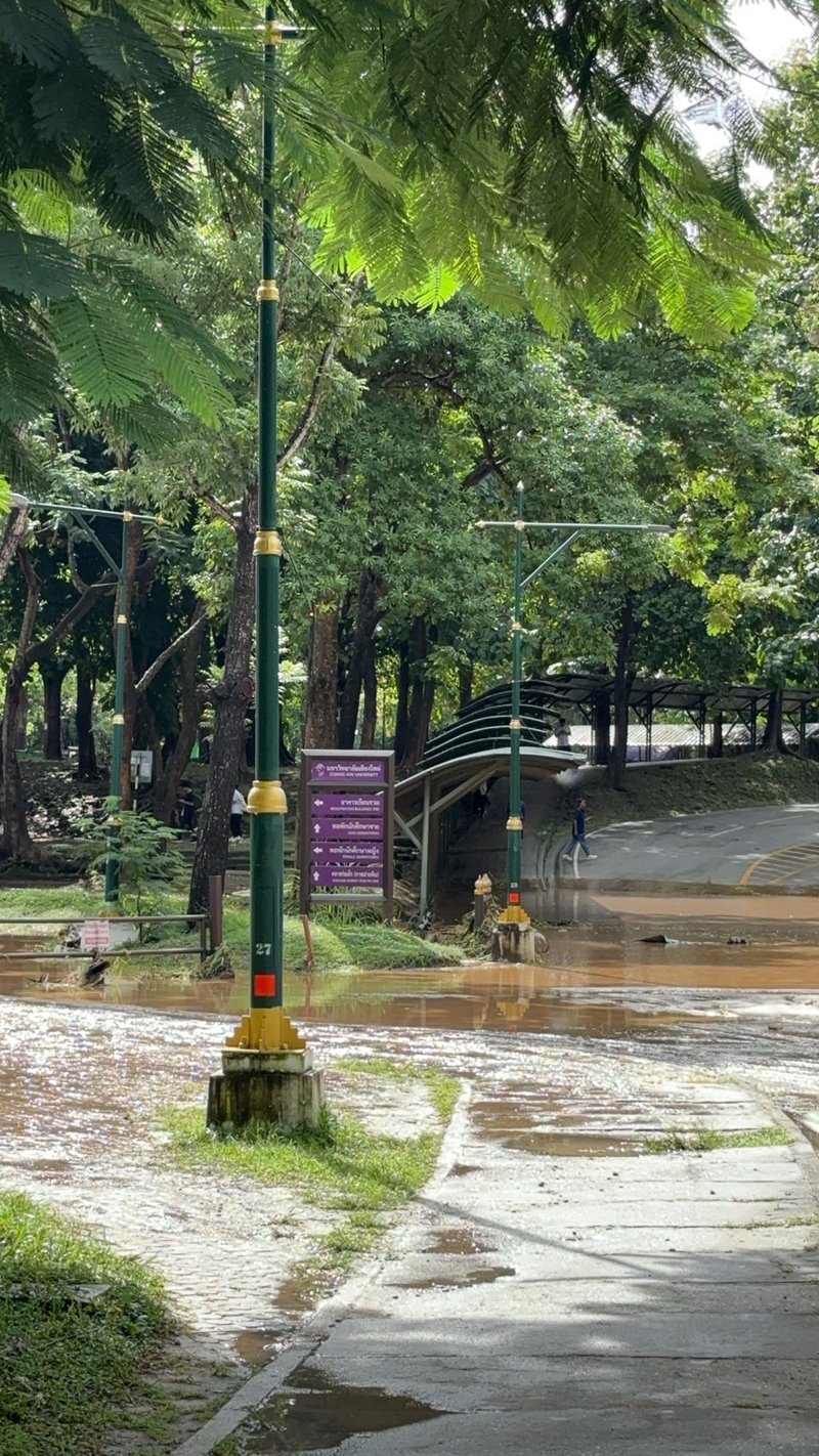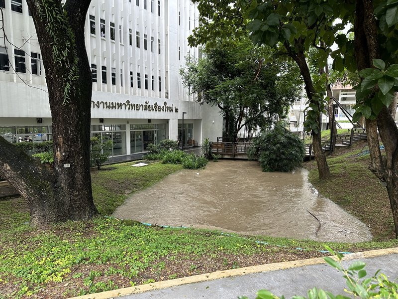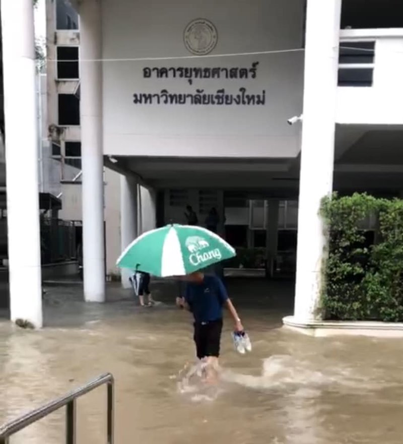 สถานการณ์น้ำท่วมเชียงใหม่ยังไม่ลด หลังมีฝนตกหนักต่อเนื่อง น้ำป่าหลากดอยสุเทพ ด้าน มช. เริ่มอ่วม ขณะที่กรมอุตุฯ ชี้แจงข่าวลือไต้ฝุ่นจ่อถล่มไทย