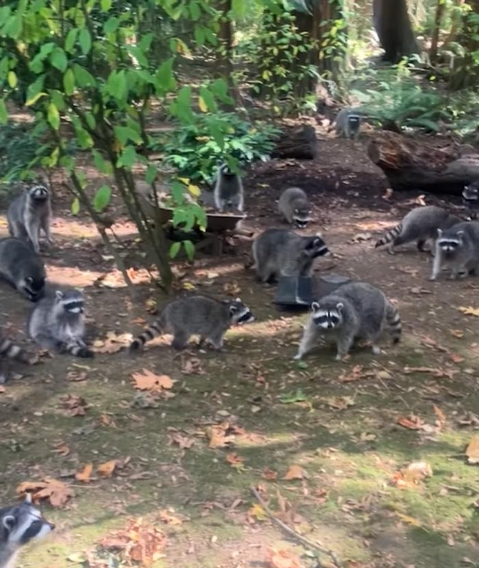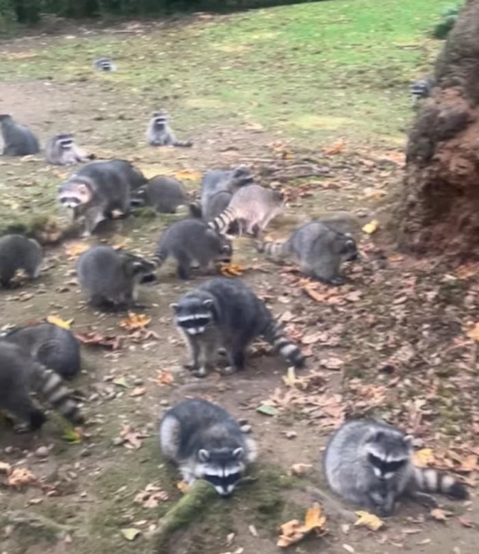 เมื่อวันที่ 8 ตุลาคม 2567 เว็บไซต์นิวยอร์กโพสต์ รายงานว่า เกิดเหตุน่าตกตะลึงขึ้นที่บ้านหลังหนึ่งในเขตชานเมืองพูลส์โบ ของรัฐวอชิงตัน สหรัฐอเมริกา หญิงเจ้าของบ้านกลับมาเจอภาพเหตุการณ์ไม่คาดฝัน มีแรคคูนมารวมตัวกันที่บริเวณสวนหน้าบ้านมากกว่า 100 ตัว สภาพราวกับเป็นสวนสัตว์ จนเธอไม่สามารถเข้าบ้านได้ ทำให้ต้องแจ้งตำรวจมาช่วยเหลือ