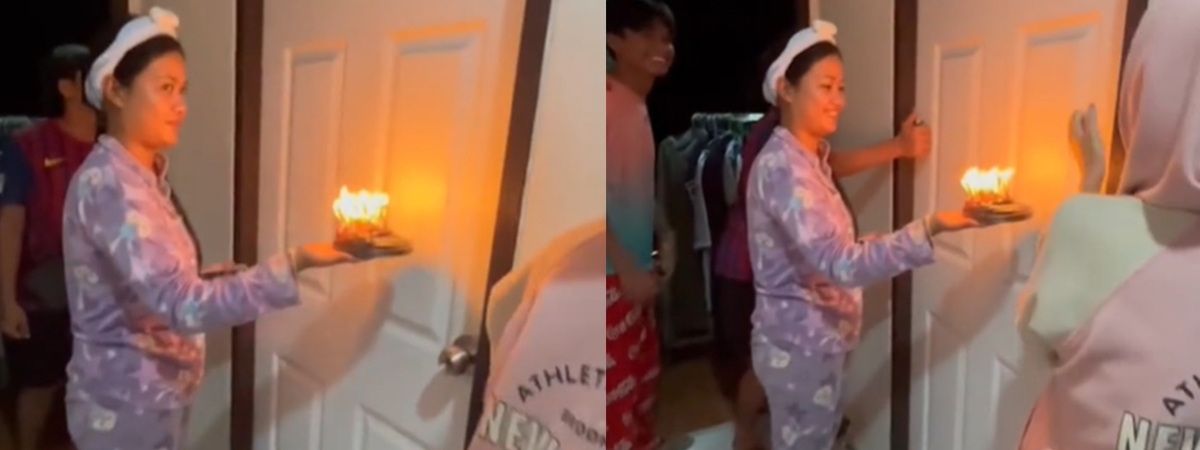 ผู้ใช้ TikTok @ppawita.p09 ได้เผยภาพบรรดาเพื่อน ๆ รวมตัวกันเซอร์ไพรส์วันเกิดหน้าห้อง ถือเค้กจุดเทียนพร้อม พอเคาะประตู เริ่มเอะใจทำไมไม่มีใครมาเปิด เคาะไปได้หลายที อยู่ ๆ ก็มีเสียงตะโกนถามขึ้นมาว่า ใคร !? งานนี้พากันเผ่นแทบไม่ทันเลยทีเดียว