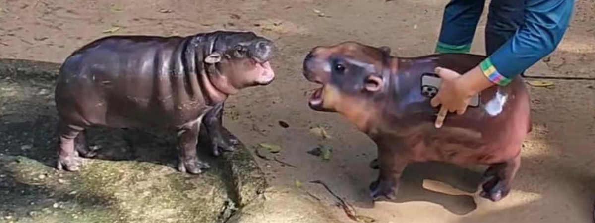เฟซบุ๊กเพจ ขาหมู แอนด์เดอะแก๊ง ได้เผยภาพคนเลี้ยงน้องหมูเด้ง นำโมเดลฝาแฝด มาวางไว้ตรงโซนที่น้องอยู่ หลังจากที่เอามาวาง หมูเด้งถึงกับสงสัยว่าใคร ทำไมถึงดูเหมือนกับตัวเองมาก ๆ แถมยังเล่นงับไม่หยุด ดูท่าแล้วน่าจะชอบฝาแฝดตัวเองไม่น้อยเลย